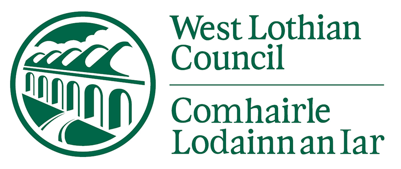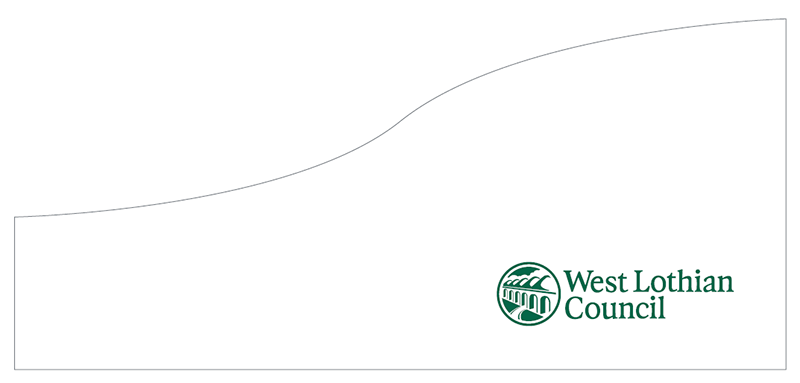 The West Lothian Council logo incorporates a visual element (viaduct and five sisters) plus the words West Lothian Council. Both elements make up the logo and must never be used separately, always together.