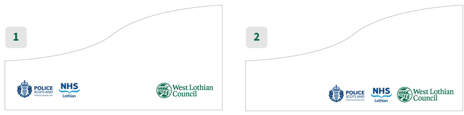If West Lothian Council is the primary partner the logo should always appear in the bottom right position with partner logos appearing from the bottom left as shown in example one.